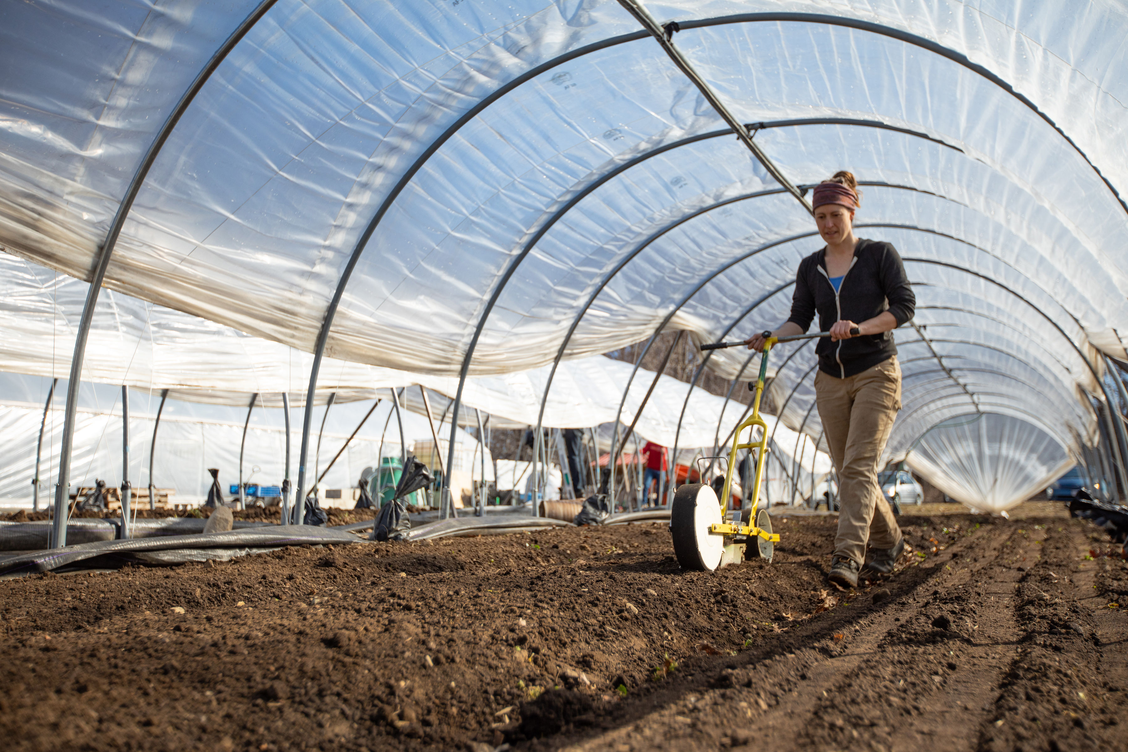 When Bob Durling emailed last week asking if there was anything to take pictures of at the farm, I got inspired. We were planning on planting the tunnels on Thursday, and wouldn’t it be cool to document the process and then put it on the blog? Well, the stars aligned, Bob was available and the weather cooperated, so, ta-da! Here is a narrative and some excellent pictures describing how we plant the tunnels.