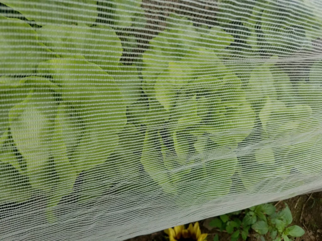 Lettuce covered by Proteknet, a mesh product that can keep pests out without trapping heat