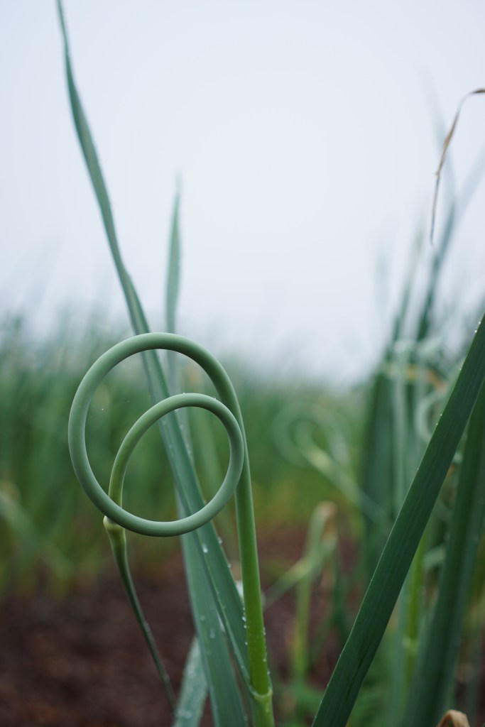| ABOUT GARLIC SCAPES | Garlic Scapes are the curly stems that shoot up out of garlic bulbs. They will eventually flower but they are typically trimmed off to allow the garlic plant to use all of its energy on making a delicious flavorful garlic bulb. Scapes taste like a cross between garlic, onion and scallions and are fantastic sautéed with eggs or to top pasta, made into pesto, grilled or added to a soup or stir-fry. | |