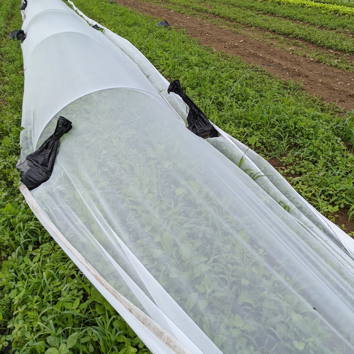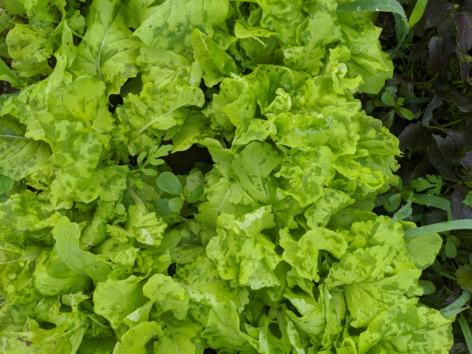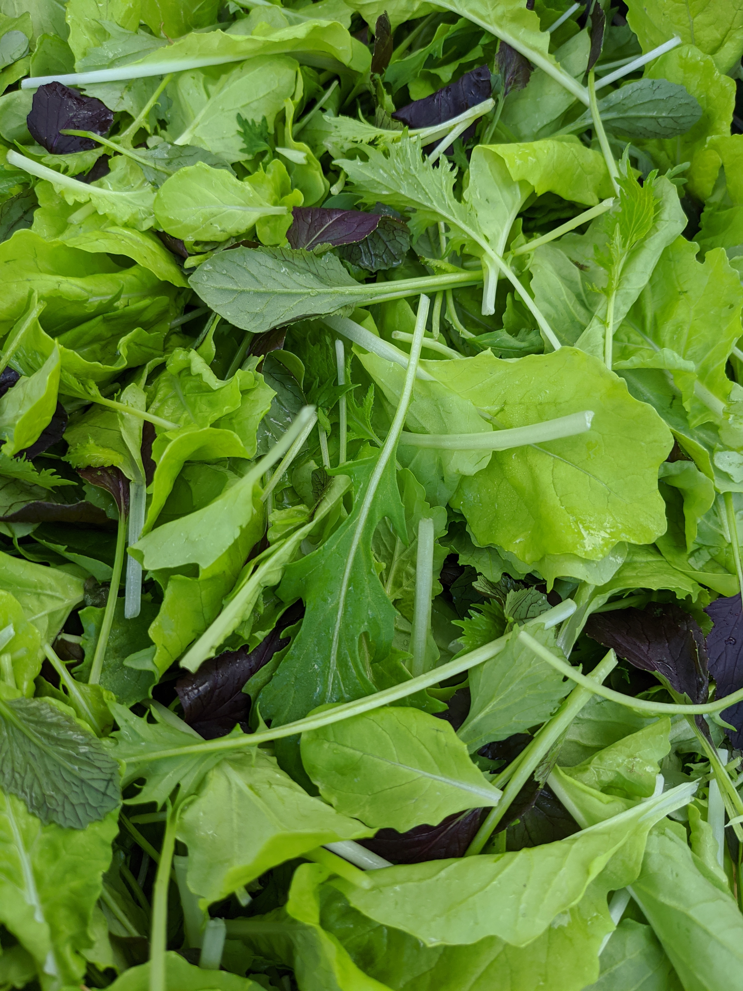 It looks bad, I know, and it is bad for some crops, but honestly, it could be WAY, WAY worse. We luckily had a lot of weeds in the pathways and covers over some of our most tender crops to try and keep flea beetle, leaf minor and root maggots out, so they didn’t get too badly beaten. So far the only thing we planned to pick this week that we lost completely is . . . was a super gourmet mild mustard mix that would have been a choice with the arugula and lettuce. We lost a really stellar looking planting of lettuce, but we have another one at Eliot St in Ashland which did not get hail. Plus some of the lettuce might pull through.