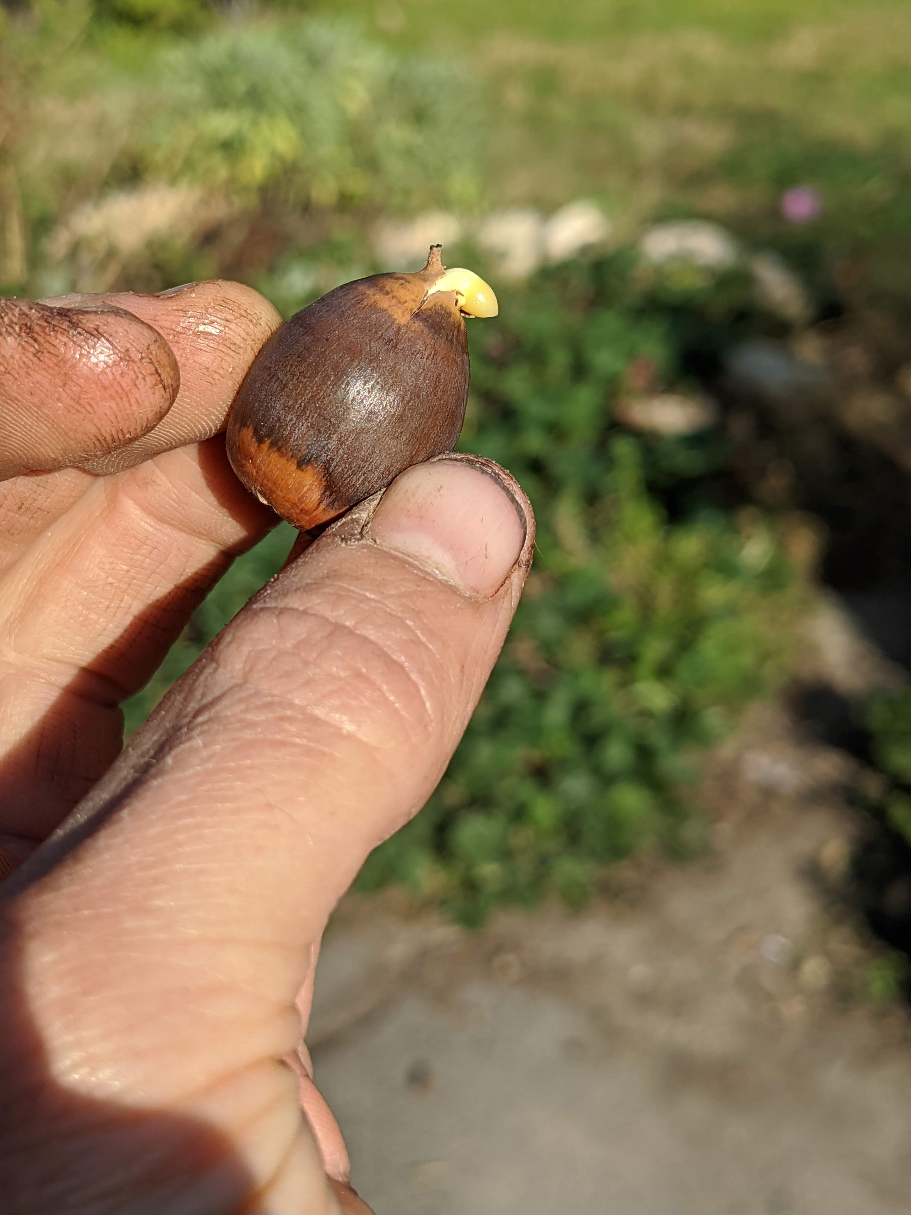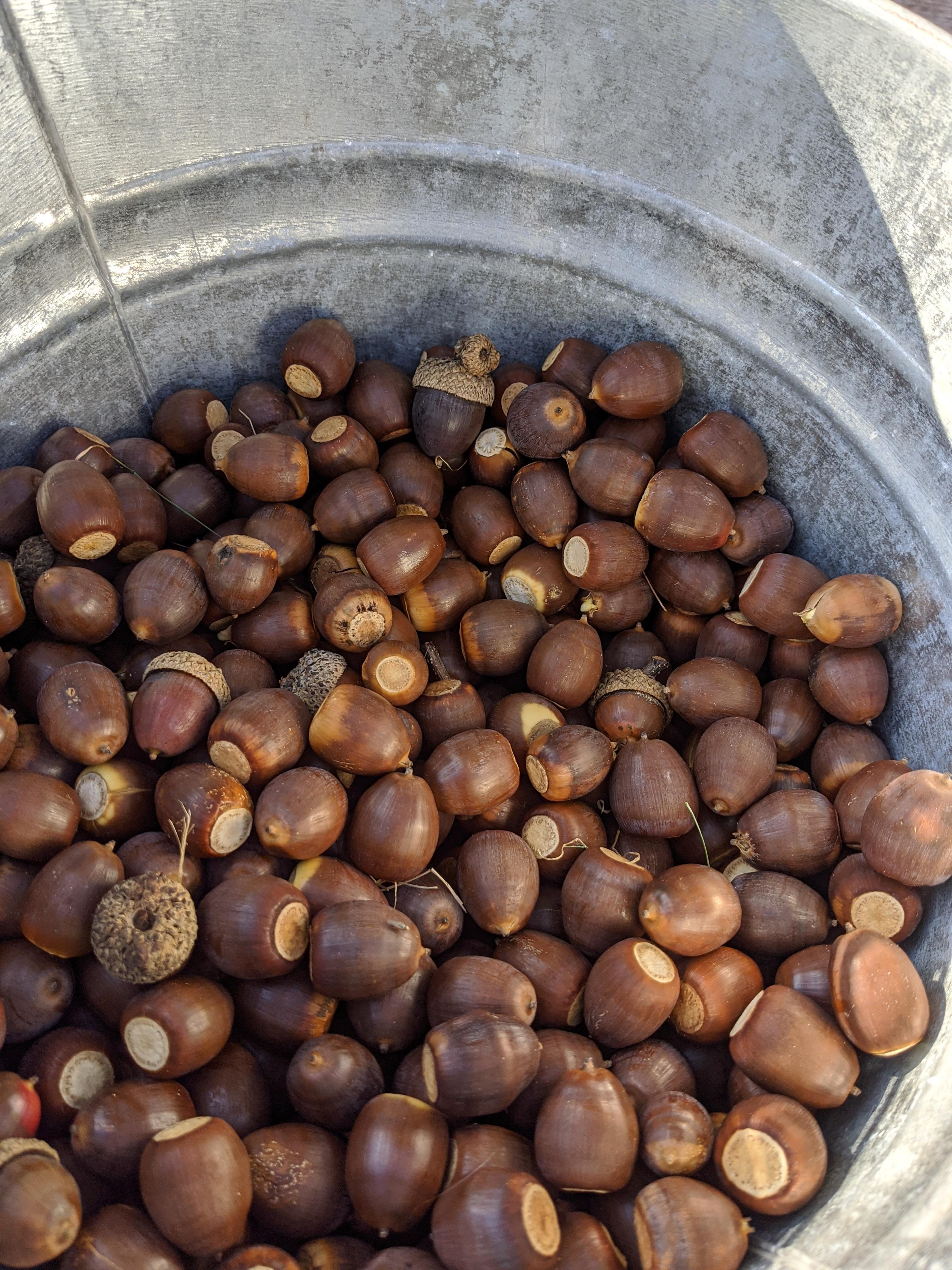 Harvey and I gathered acorns in our front yard on Sunday. It’s a heavy acorn year, a “mast Year” (I just looked it up, based on a vague memory). Mast years happen every 2-5 years, where oaks make loads of acorns, while other years they make very few. There is no definitive scientific explanation for this, but it has been theorized that in mast years there are so many acorns, some will definitely not be eaten by predators, allowing some oak trees to grow, while in other years, a lower production keeps the population of acorn eating species down.