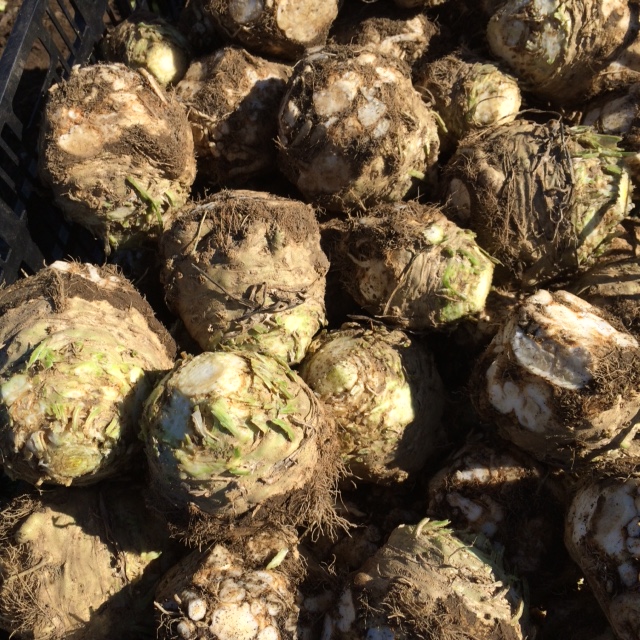 Celery Root or Celeriac is packed with fiber, vitamins and minerals and is surprisingly delicious. It’s sort of a cross between celery and parsley in terms of flavor but with a potato or apple-like texture. I like to cut it into chunks or steak fry shapes and roast it with a splash of olive oil and some salt and pepper.