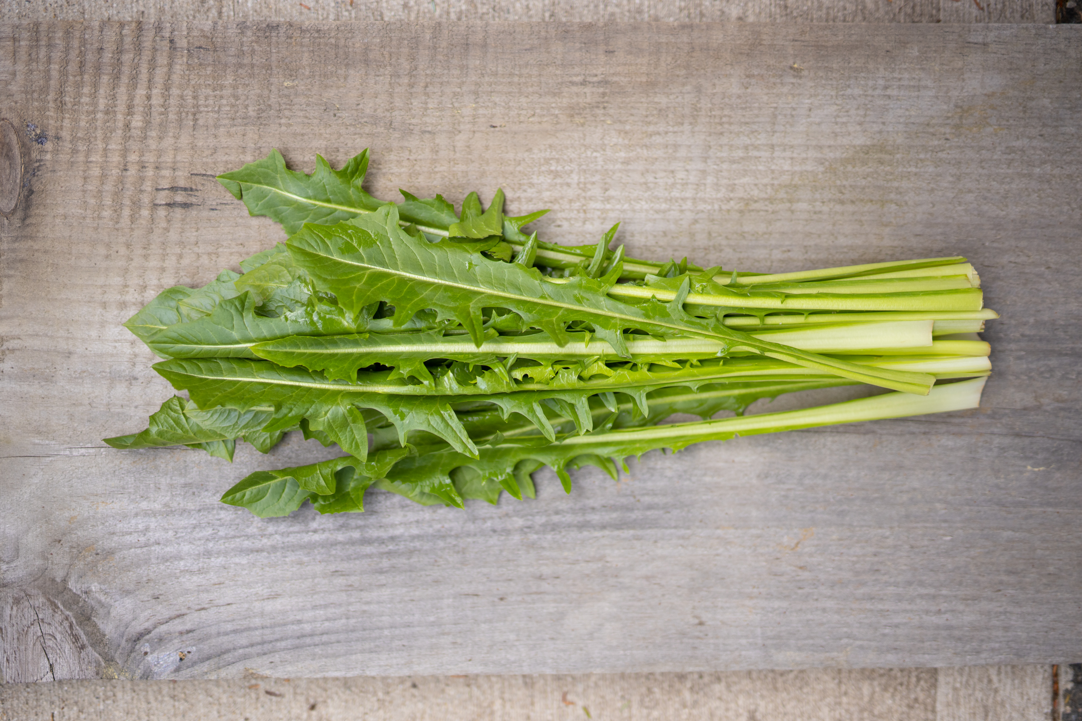 Dandelion greens are loaded with vitamins and minerals and have been known to reduce blood pressure and to encourage healthy cholesterol levels. They are a bitter green similar in flavor to arugula and chicory and taste best paired with fats (bacon fat, olive oil, etc.) and acids such as lemon juice or vinegar.