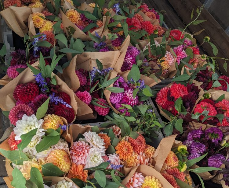 We offer 3 seasons of flower subscriptions: Spring, Summer and our Fall Dahlia subscription. Each weekly bouquet changes based on the variety of annual and perennial flowers available to harvest that week. Your bouquet will be arranged and wrapped, ready for pick up at one of our locations in Pepperell or Hopkinton.