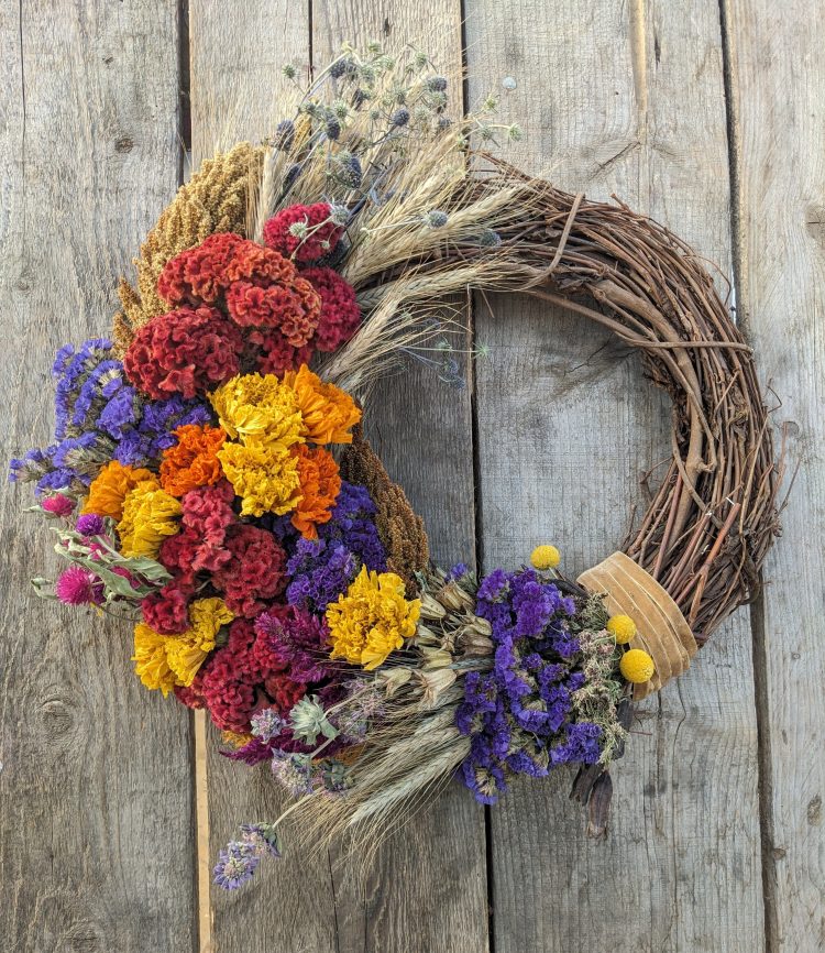 All flower are grown, harvested and dried here on our farm. Join fellow crafters and make an everlasting wreath to enjoy for years to come.