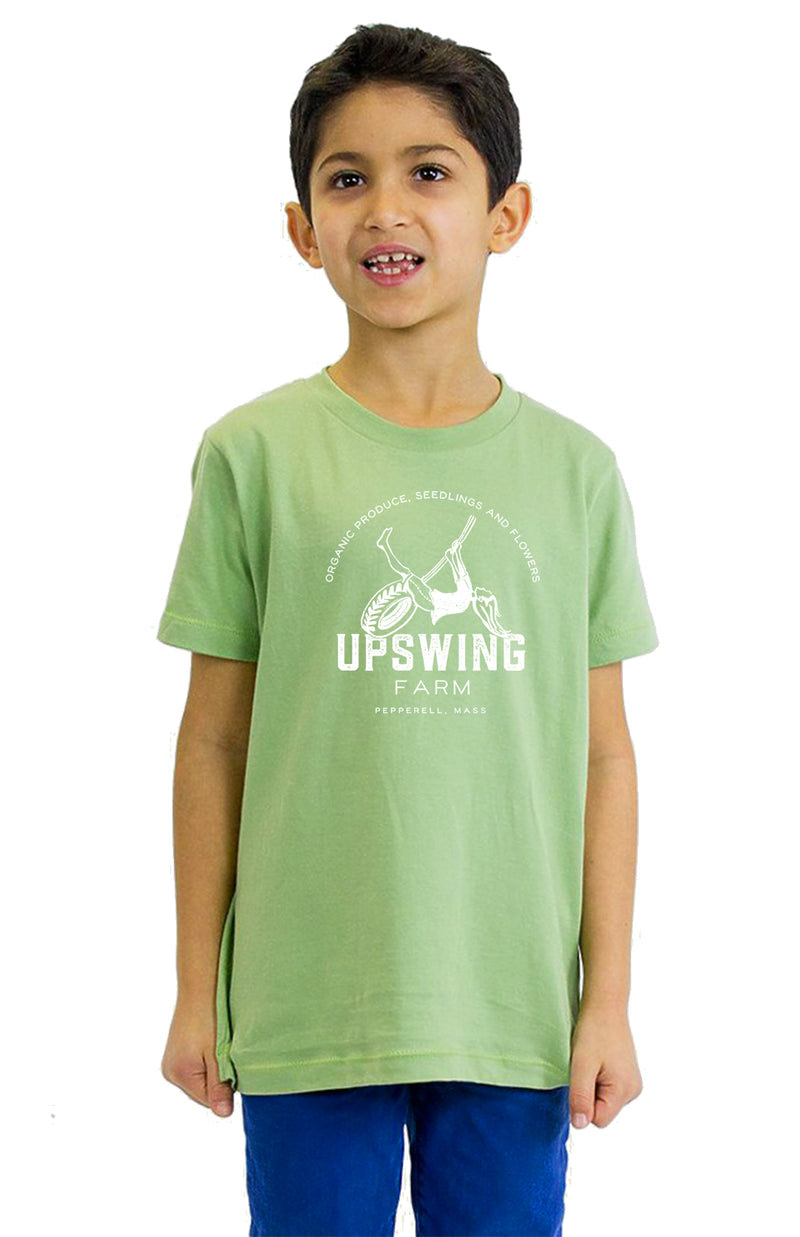 We’ve printed our first run of t-shirts, but there is more to come! We don’t know why some of the models look so serious – they are wearing an upswing farm shirt – they should look utterly joyful. The kid in the eggplant shirt gets it.